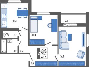 Продаётся 2-комнатная квартира в строящемся доме (Корпус 1), срок сдачи: II-кв. 2028, общей площадью 60.5 кв.м., на 11 этаже. Новый жилой комплекс ''Поколения'' от застройщика ''ОДСК'' расположен по адресу Орловская область, Город Орёл, Улица Льва Толстого.