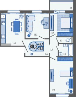 Продаётся 3-комнатная квартира в строящемся доме (2 этап (поз. 71)), срок сдачи: I-кв. 2028, общей площадью 80.3 кв.м., на 10 этаже. С одной стороны жилой комплекс погрузит вас в тихую размеренную атмосферу, а с другой даст возможность насладиться динамичностью квартала со всей его развитой образовательной инфраструктурой. Образование - как стиль жизни, который берет начало в расположившейся в шаговой доступности школе и проходит тонкой нитью через благоустройство ЖК, расширяя познавательные границы будущих жильцов. Это ЖК со сложившейся инфраструктурой, который порадует как семейных людей за счет тематических детских площадок и близостью социальных объектов и так и для молодых, которых приятно удивит обширная квартирография, близость магазинов, пунктов выдачи онлайн-магазинов, ледовая арена. Вся территория ЖК ''Образцовый квартал'' огорожена, что обеспечивает полную безопасность и Вам, и Вашим родным. Можно не беспокоиться за детей, играющих во дворе и спокойно наслаждаться прогулками по территории. Во всех подъездах и на территории комплекса организовано видеонаблюдение, что добавит уверенности и надежности жителям комплекса. Face ID для доступа в жилой комплекс, подъезд и колясочную - это инвестиция в комфорт и ваше спокойствие