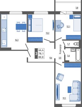 Продаётся 3-комнатная квартира в строящемся доме (Корпус 1), срок сдачи: II-кв. 2028, общей площадью 79.3 кв.м., на 7 этаже. Новый жилой комплекс ''Поколения'' от застройщика ''ОДСК'' расположен по адресу Орловская область, Город Орёл, Улица Льва Толстого.