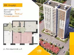 Уютная однокомнатная квартира в ЖК ''Лидер'' с отделкой. Спроектирована с учетом самых современных технологий и требований к комфорту. Просторные планировки, высококачественные материалы, панорамные окна, большие балконы и виды на живописные окрестности — все это создает атмосферу уютного и благополучного жилья