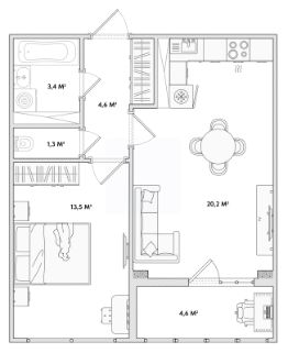 43 м2