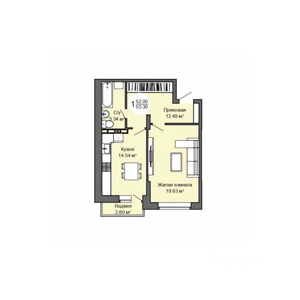 53 м² · Этаж 2 из 16