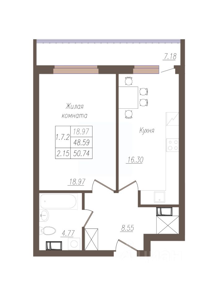 Продаётся 1-комнатная квартира в сданном доме (дом 1), срок сдачи: III-кв. 2024, общей площадью 50.74 кв.м., на 4 этаже. В 2021 году стартовал новый проект от компании ''Фортуна'' - ЖК ''Крылья'' на улице Генерала Родина. Он будет состоять из четырех высоток. Строительство первого девятнадцатиэтажного здания уже началось. Комплекс будет отличаться ультрасовременным уровнем благоустройства территории, прилегающей к жилым новостройкам. Согласно проекту воплотится в жизнь концепция ''двор без машин''. Для жителей высоток будут построены закрытие парковки, в том числе и подземные, дворовая же территория станет безопасным местом для семейного отдыха и занятий спортом.