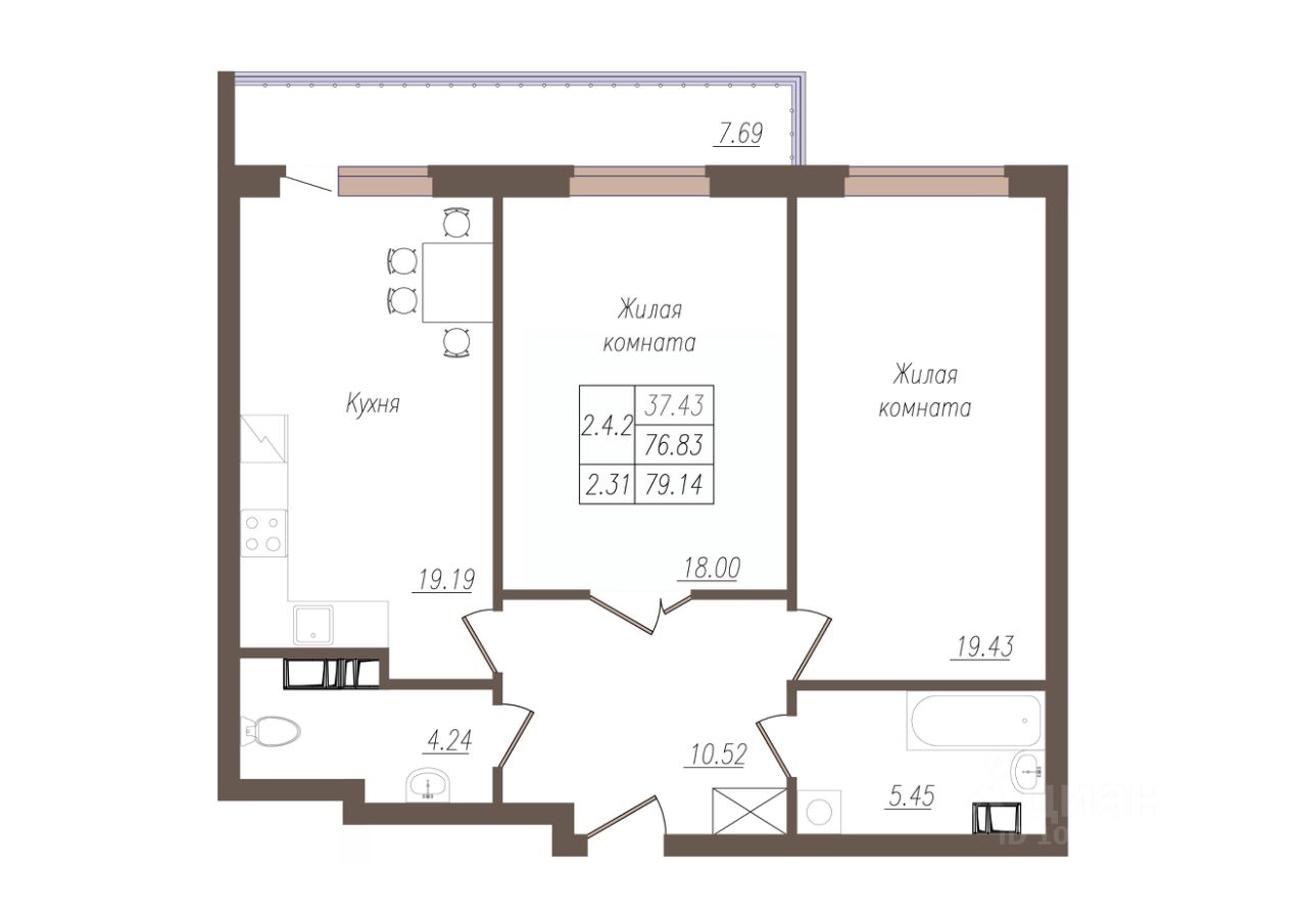 Продаётся 2-комнатная квартира в сданном доме (дом 1), срок сдачи: III-кв. 2024, общей площадью 79.14 кв.м., на 3 этаже. В 2021 году стартовал новый проект от компании ''Фортуна'' - ЖК ''Крылья'' на улице Генерала Родина. Он будет состоять из четырех высоток. Строительство первого девятнадцатиэтажного здания уже началось. Комплекс будет отличаться ультрасовременным уровнем благоустройства территории, прилегающей к жилым новостройкам. Согласно проекту воплотится в жизнь концепция ''двор без машин''. Для жителей высоток будут построены закрытие парковки, в том числе и подземные, дворовая же территория станет безопасным местом для семейного отдыха и занятий спортом.