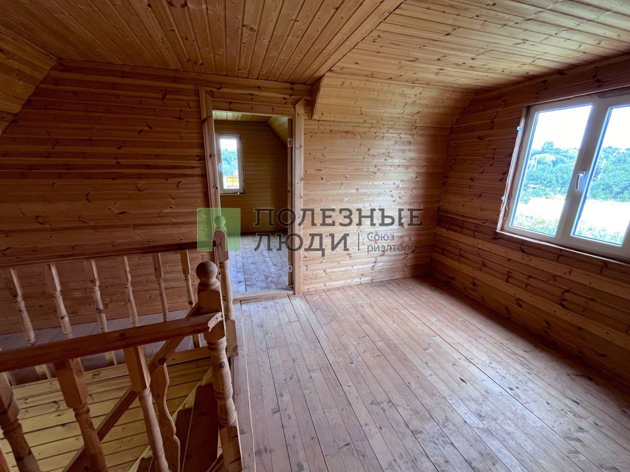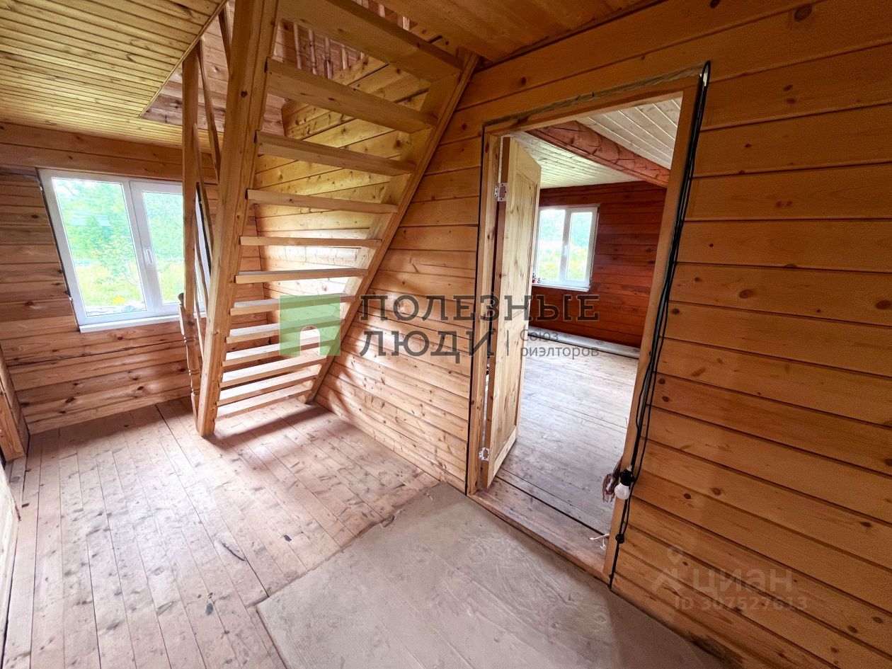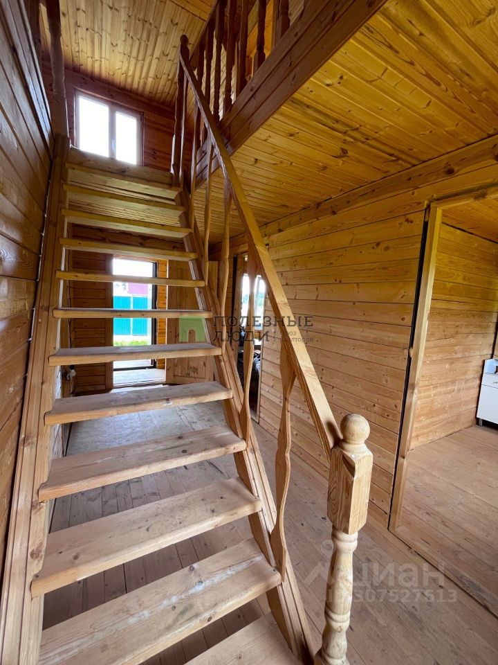 Дом построен из бруса на свайном фундаменте. Планировка дома включает в себя кухню - гостиную, спальную комнату внизу и две спальные комнаты на втором этаже. Хороший подъезд к участку. За домом хороший приусадебный участок. Водоем в паре минут пешком.