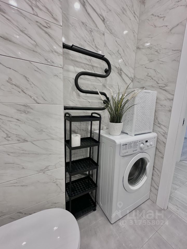 Ванная комната: ванна, новая стиральная машина, шкафчик для хранения