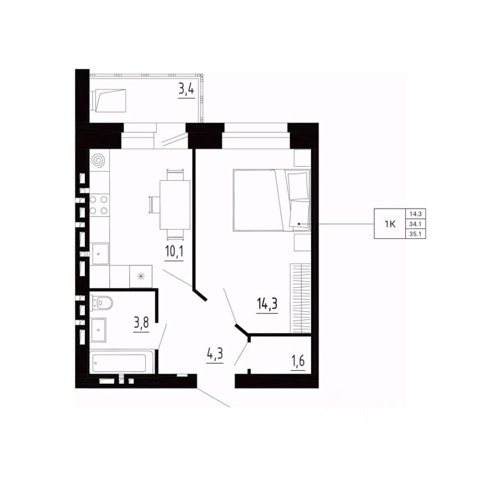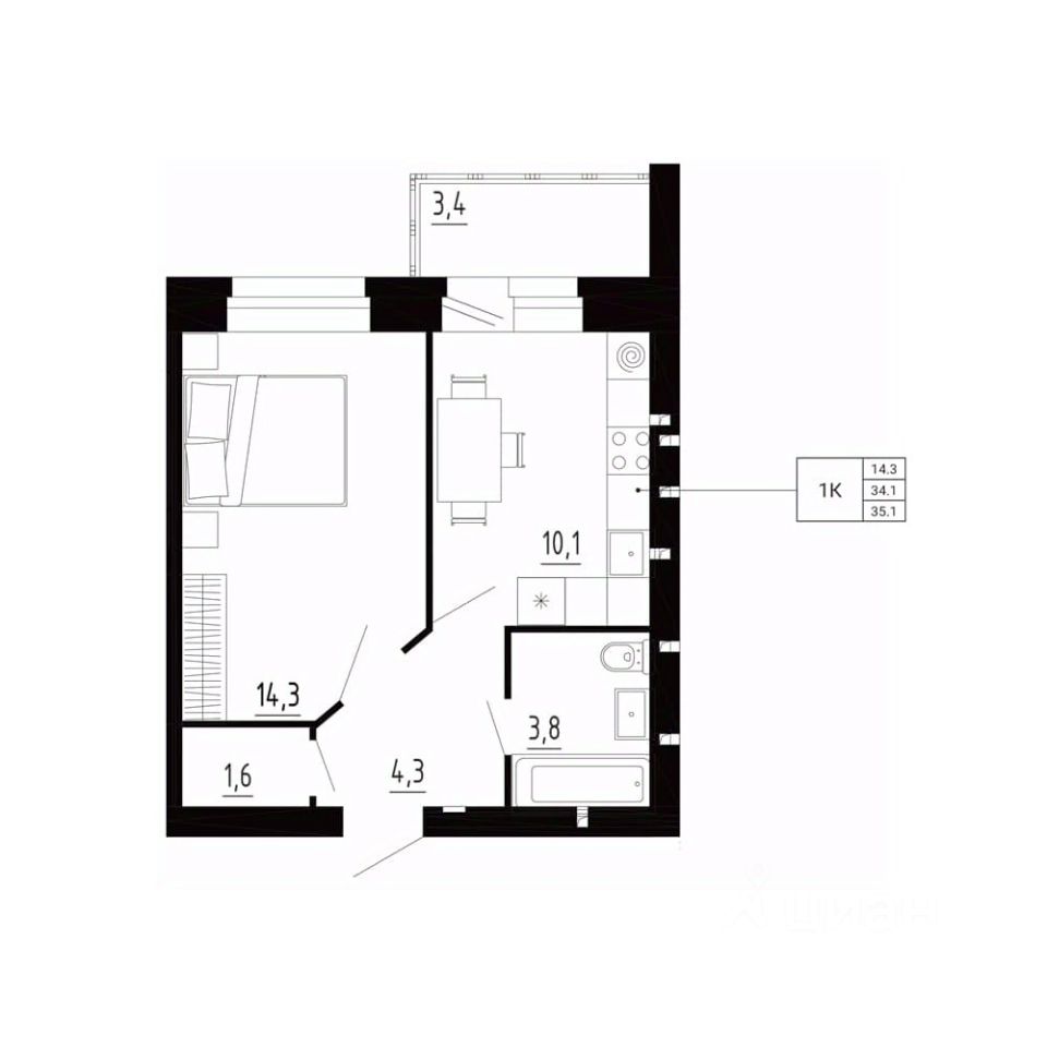 продам 1-к, Образцово3 404 700 ₽