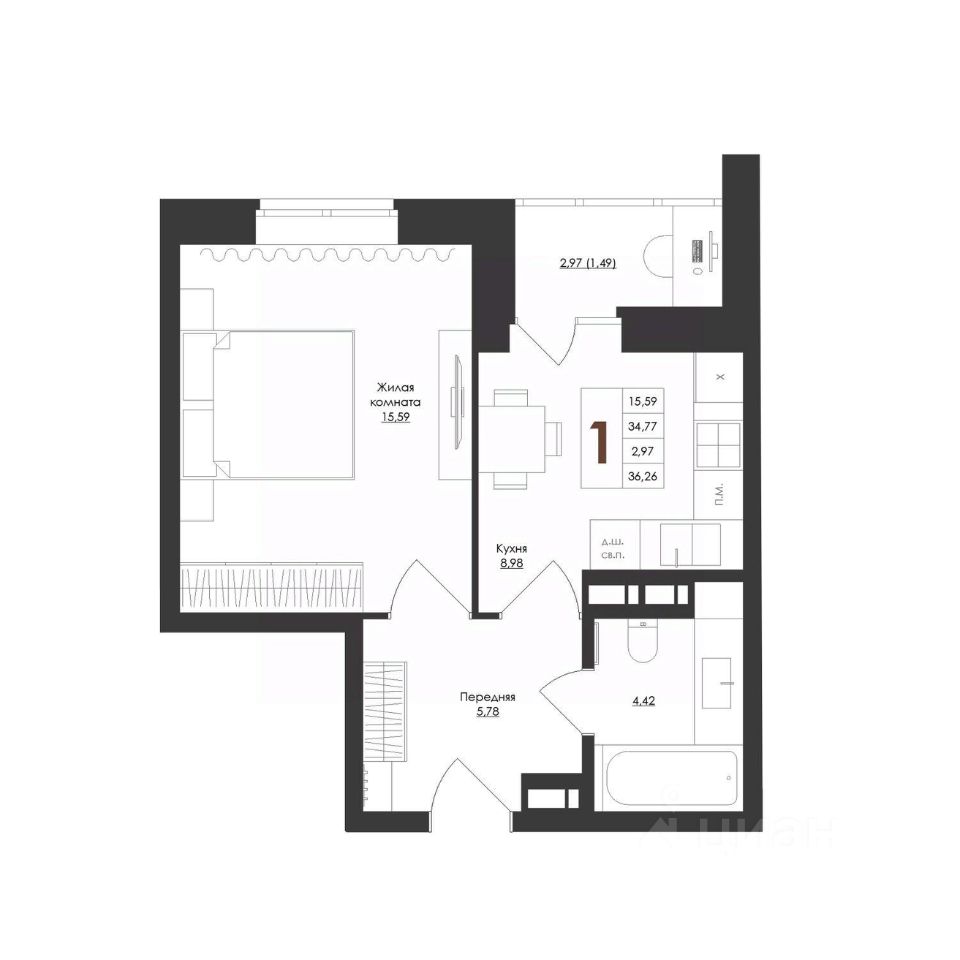 Уютная однокомнатная квартира в ЖК ''Лидер'' с отделкой. Спроектирована с учетом самых современных технологий и требований к комфорту. Просторные планировки, высококачественные материалы, панорамные окна, большие балконы и виды на живописные окрестности — все это создает атмосферу уютного и благополучного жилья