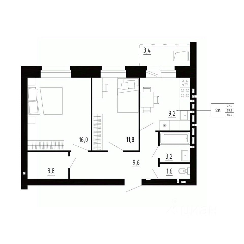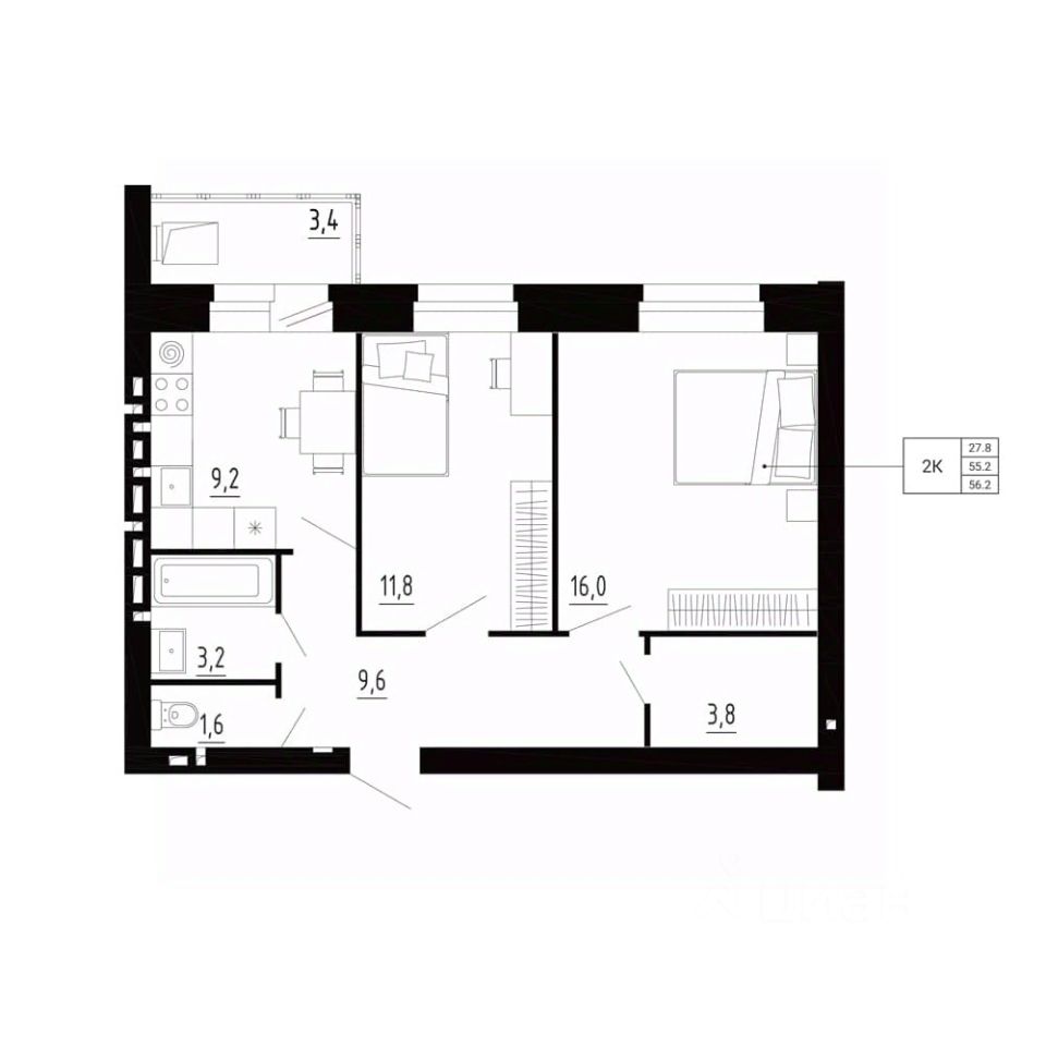 продам 2-к, Образцово5 282 800 ₽