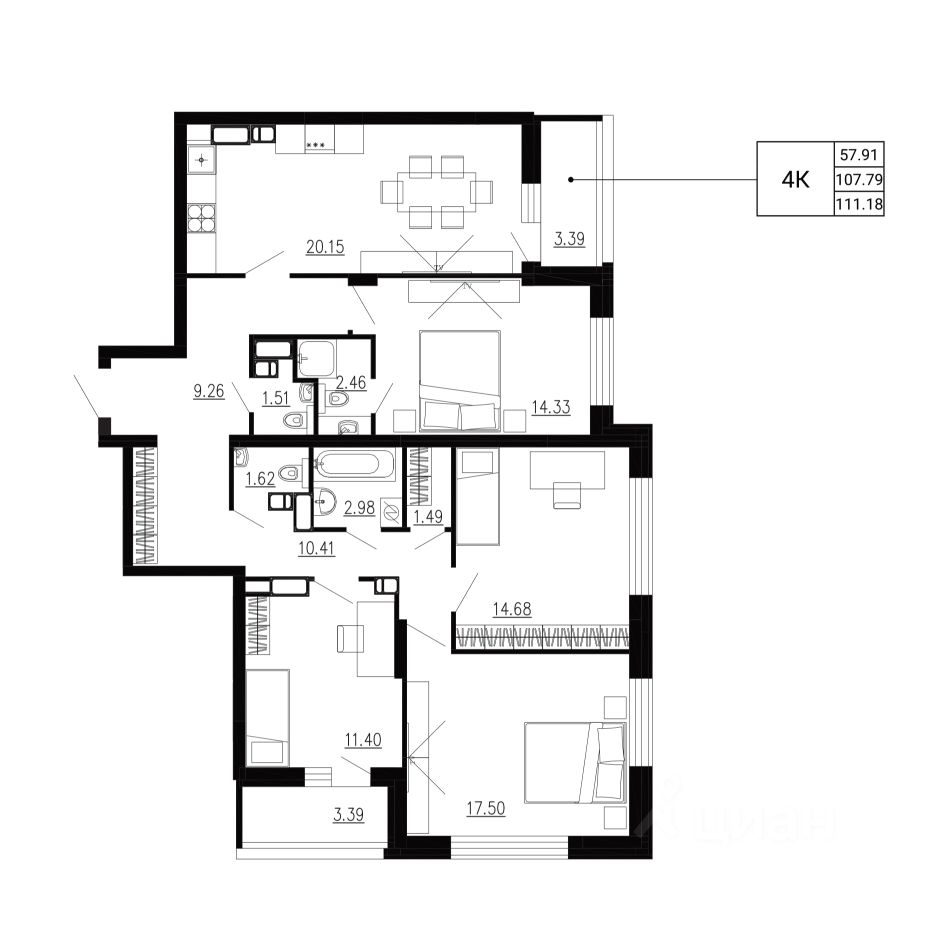 Общая площадь111,18 м2