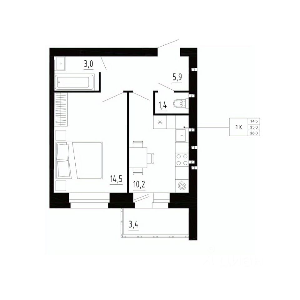 продам 1-к, Образцово3 492 000 ₽