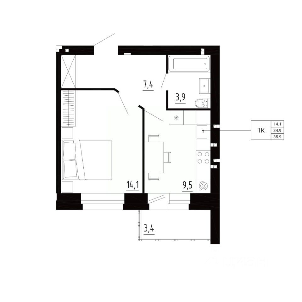 продам 1-к, Образцово3 482 300 ₽