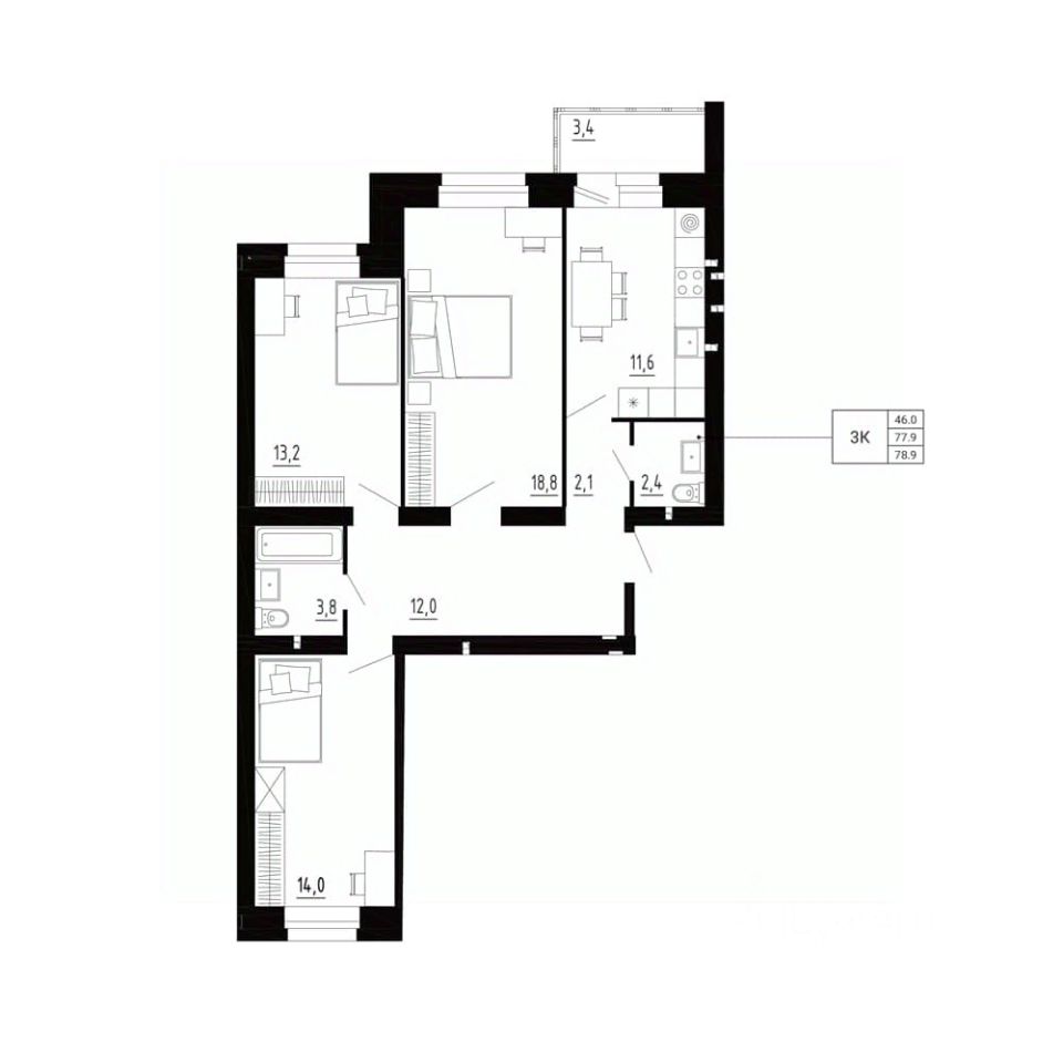 продам 3-к, Образцово7 101 000 ₽