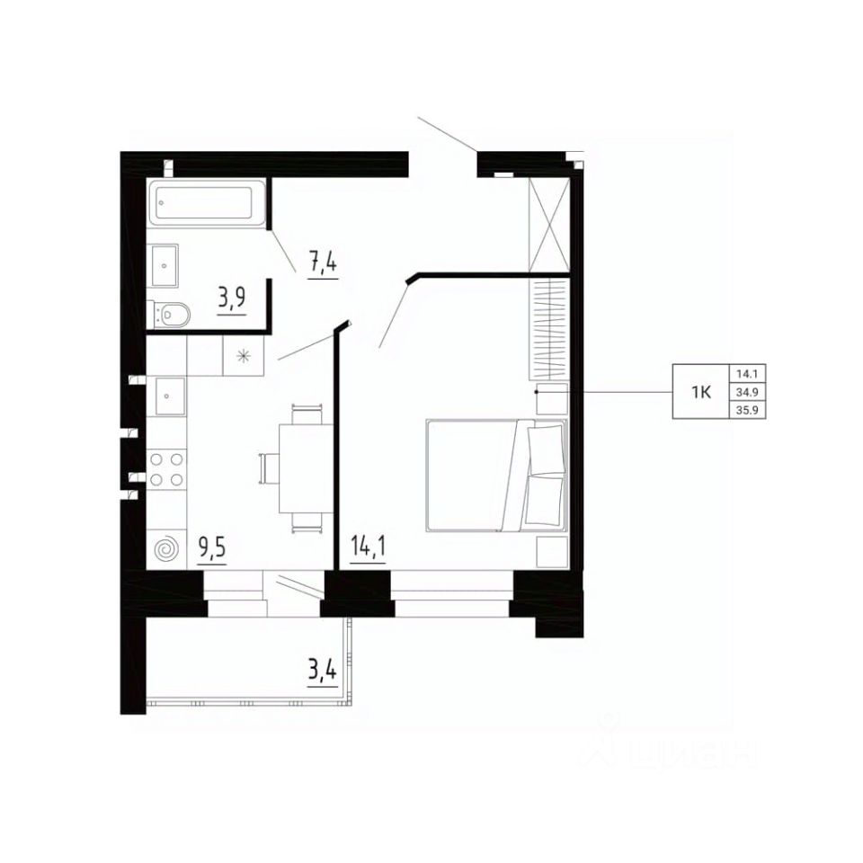продам 1-к, Образцово3 482 300 ₽