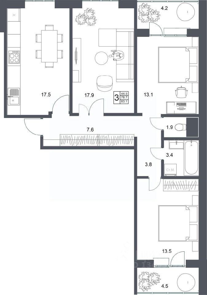 Общая площадь83,1 м2