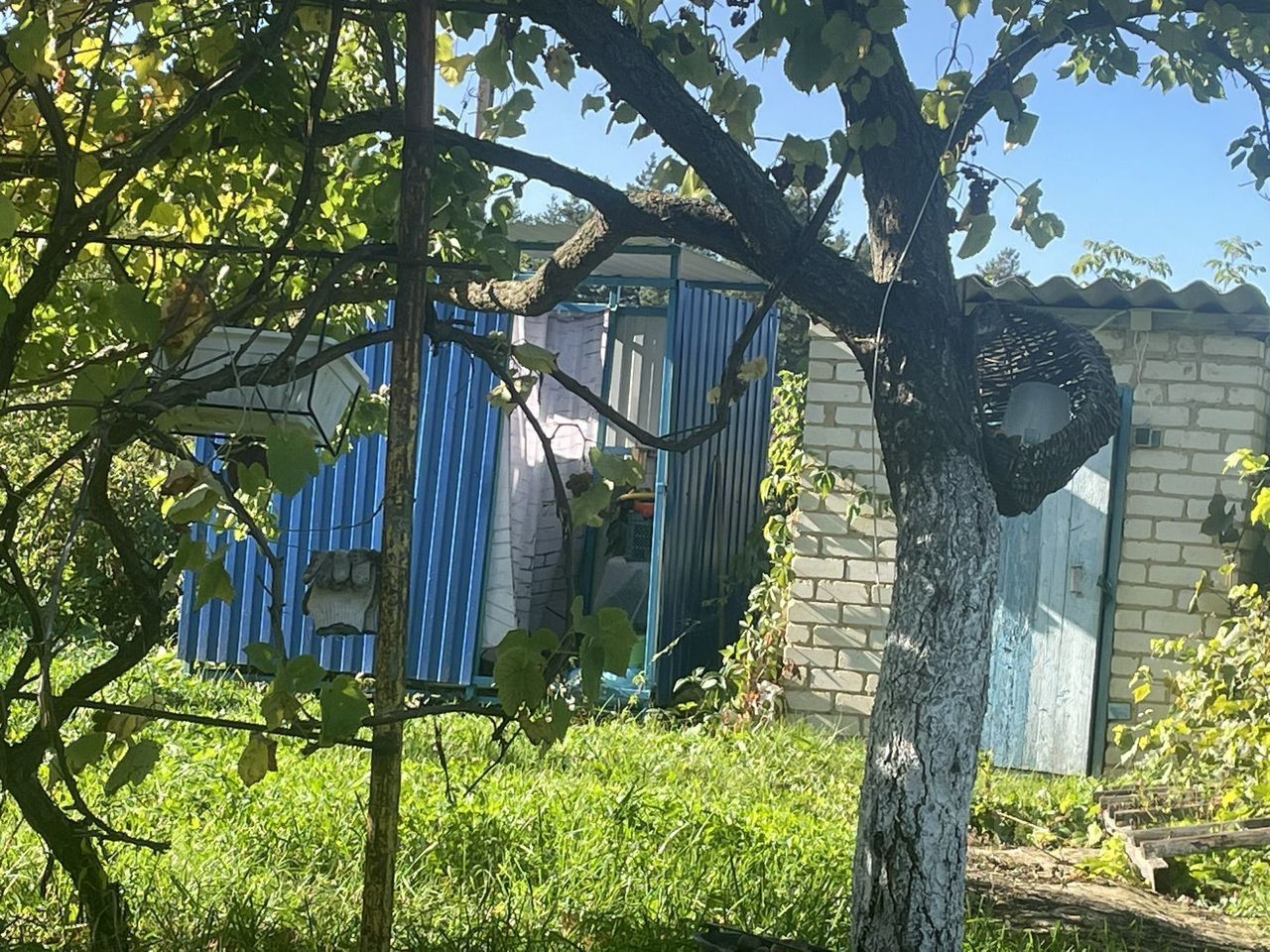 На участке душ, туалет. Подъезд круглогодичный, электричество круглогодично, вода сезонно от СНТ четыре раза в неделю, газ вдоль калитки (СНТ газифицирован). Из насаждений - деревья, кустарники, виноград, цветы, клубника, малина, смородина.
