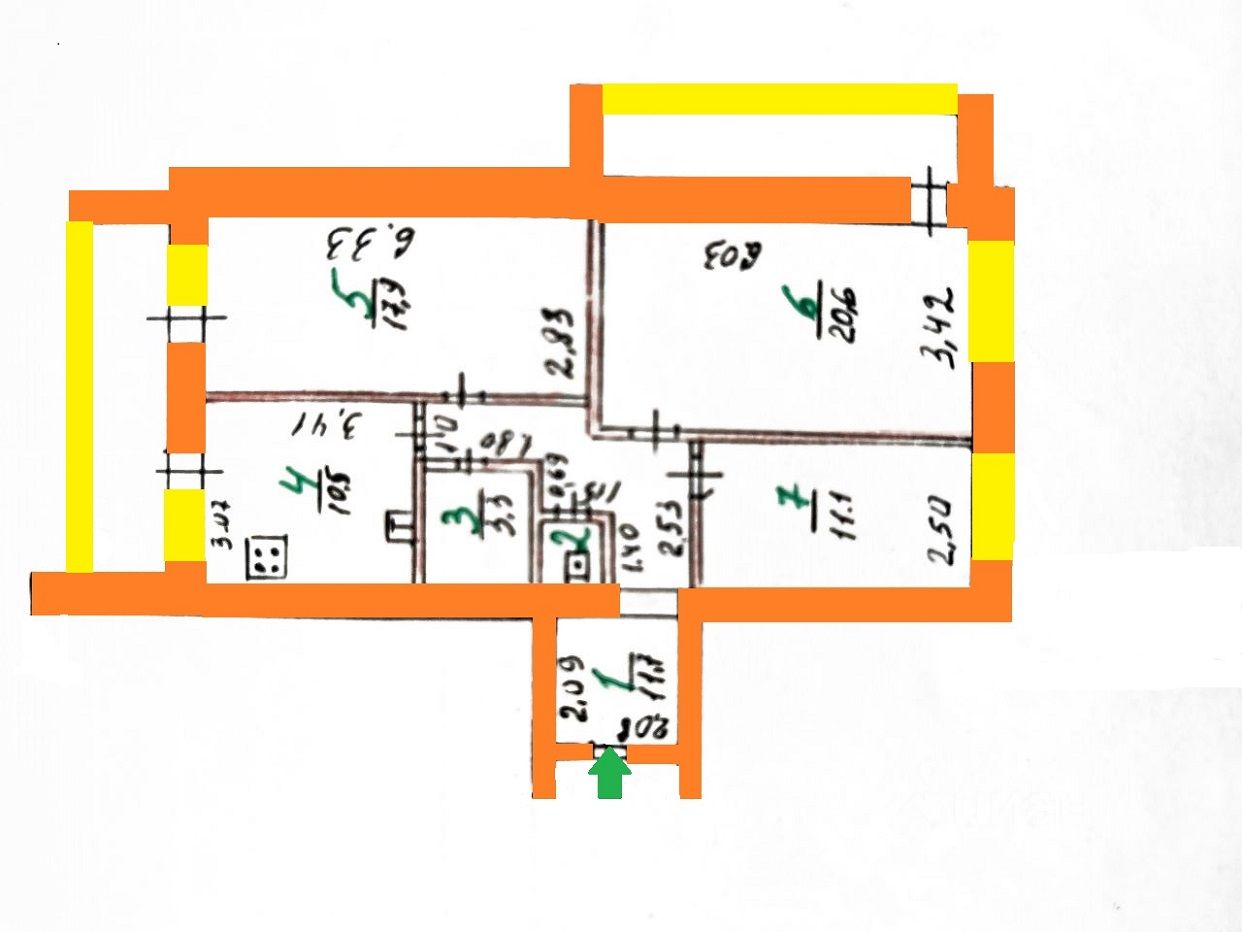 Квартира находится на 3-м этаже КИРПИЧНОГО жилого дома.