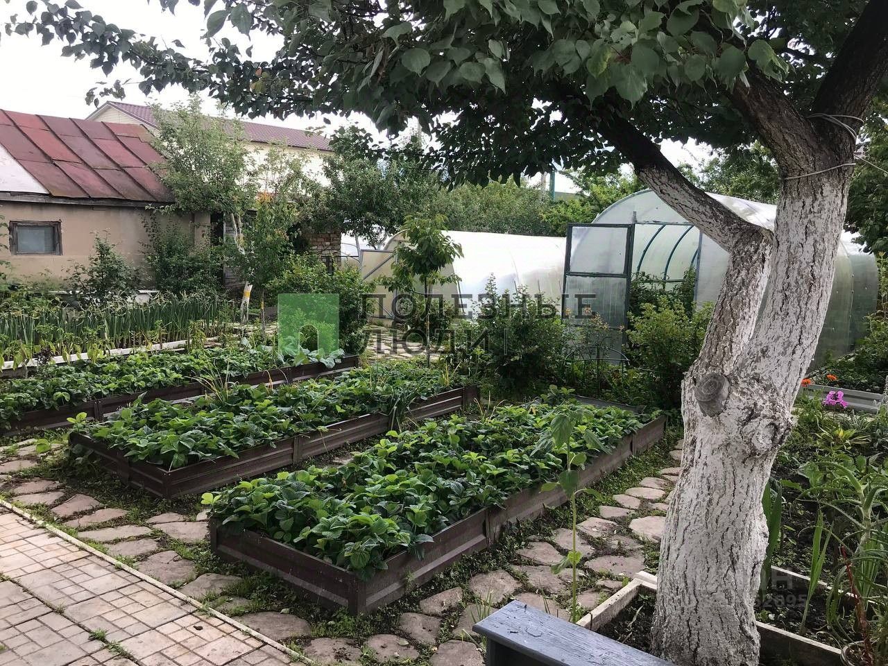 Территория ухожена: высажены плодовые деревья и кустарники: абрикосы, яблоня, вишня, слива, груша, 3 сорта смородины, 3 сорта крыжовника, 9 сортов винограда, клубника, черноплодная рябина, барбарис. Перед окнами и в саду разбит цветник! Овощи, фрукты, ягоды и зелень будут на Вашем столе со своего огорода!