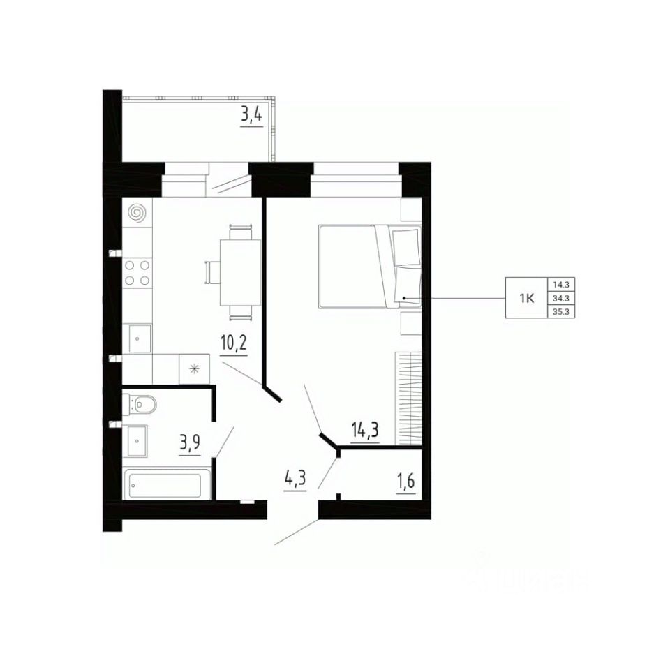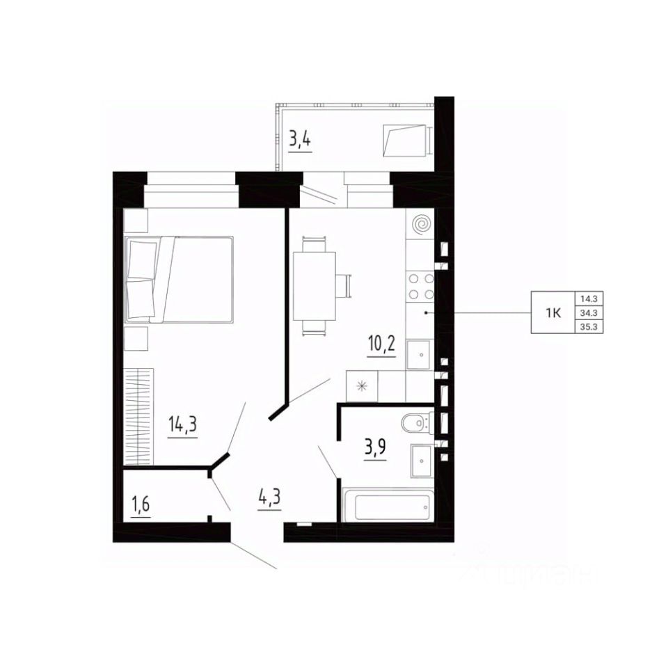 продам 1-к, Образцово3 424 100 ₽
