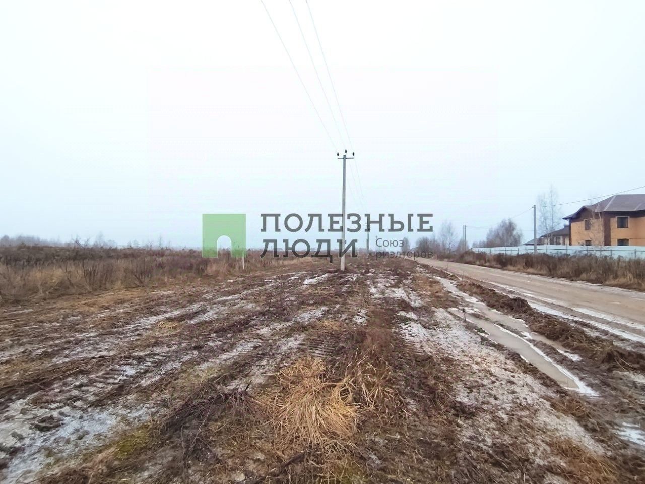 Электрические столбы проходят вдоль участка.