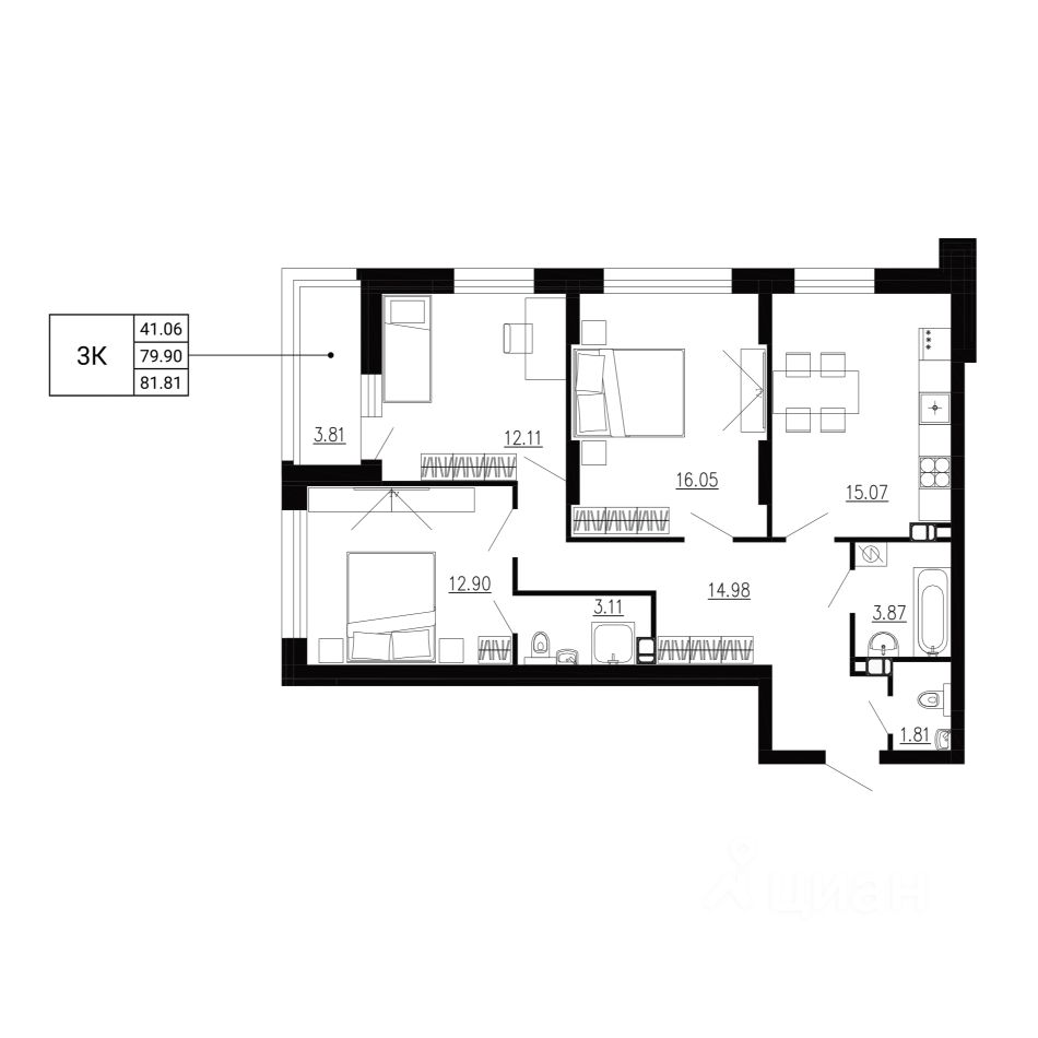 Общая площадь81,81 м2