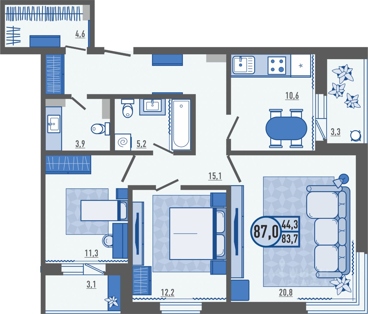 Продаётся 3-комнатная квартира в сданном доме (дом 3), срок сдачи: I-кв. 2025, общей площадью 87 кв.м., на 13 этаже. Новый жилой комплекс ''Новые высоты'' от застройщика ''Орелстрой'' расположен по адресу Орловский муниципальный округ, деревня Жилина, улица Генерала Лаврова.