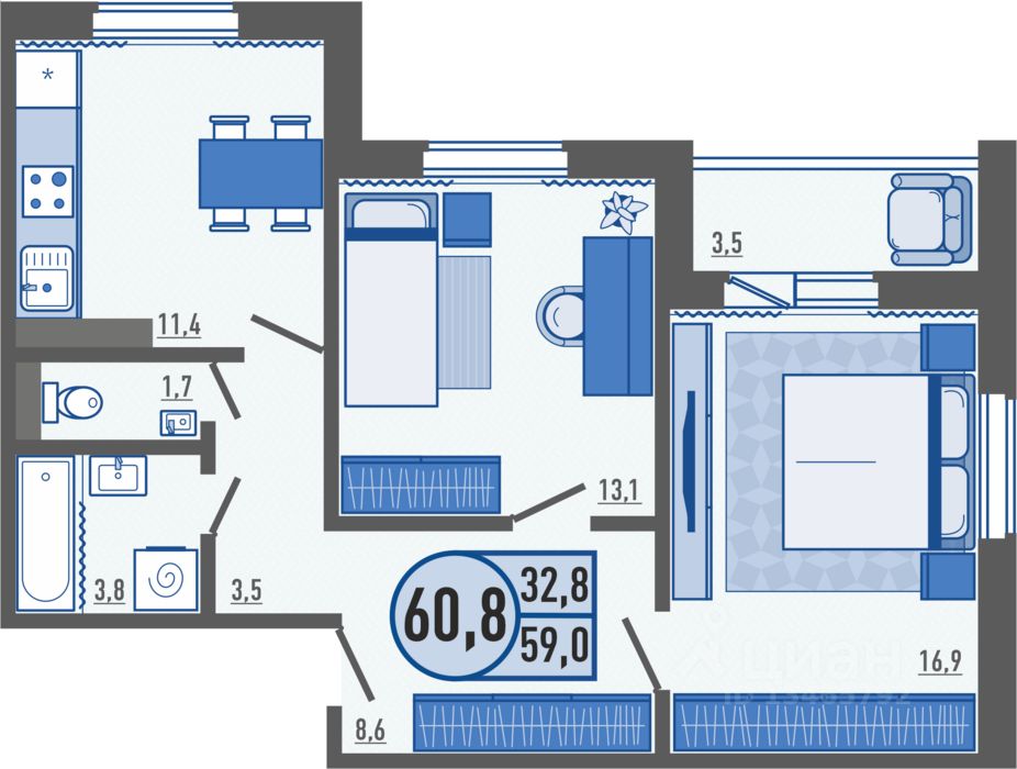 Продаётся 2-комнатная квартира в строящемся доме (1 этап (поз.69)), срок сдачи: III-кв. 2026, общей площадью 60.8 кв.м., на 16 этаже. С одной стороны жилой комплекс погрузит вас в тихую размеренную атмосферу, а с другой даст возможность насладиться динамичностью квартала со всей его развитой образовательной инфраструктурой. Образование - как стиль жизни, который берет начало в расположившейся в шаговой доступности школе и проходит тонкой нитью через благоустройство ЖК, расширяя познавательные границы будущих жильцов. Это ЖК со сложившейся инфраструктурой, который порадует как семейных людей за счет тематических детских площадок и близостью социальных объектов и так и для молодых, которых приятно удивит обширная квартирография, близость магазинов, пунктов выдачи онлайн-магазинов, ледовая арена. Вся территория ЖК ''Образцовый квартал'' огорожена, что обеспечивает полную безопасность и Вам, и Вашим родным. Можно не беспокоиться за детей, играющих во дворе и спокойно наслаждаться прогулками по территории. Во всех подъездах и на территории комплекса организовано видеонаблюдение, что добавит уверенности и надежности жителям комплекса. Face ID для доступа в жилой комплекс, подъезд и колясочную - это инвестиция в комфорт и ваше спокойствие