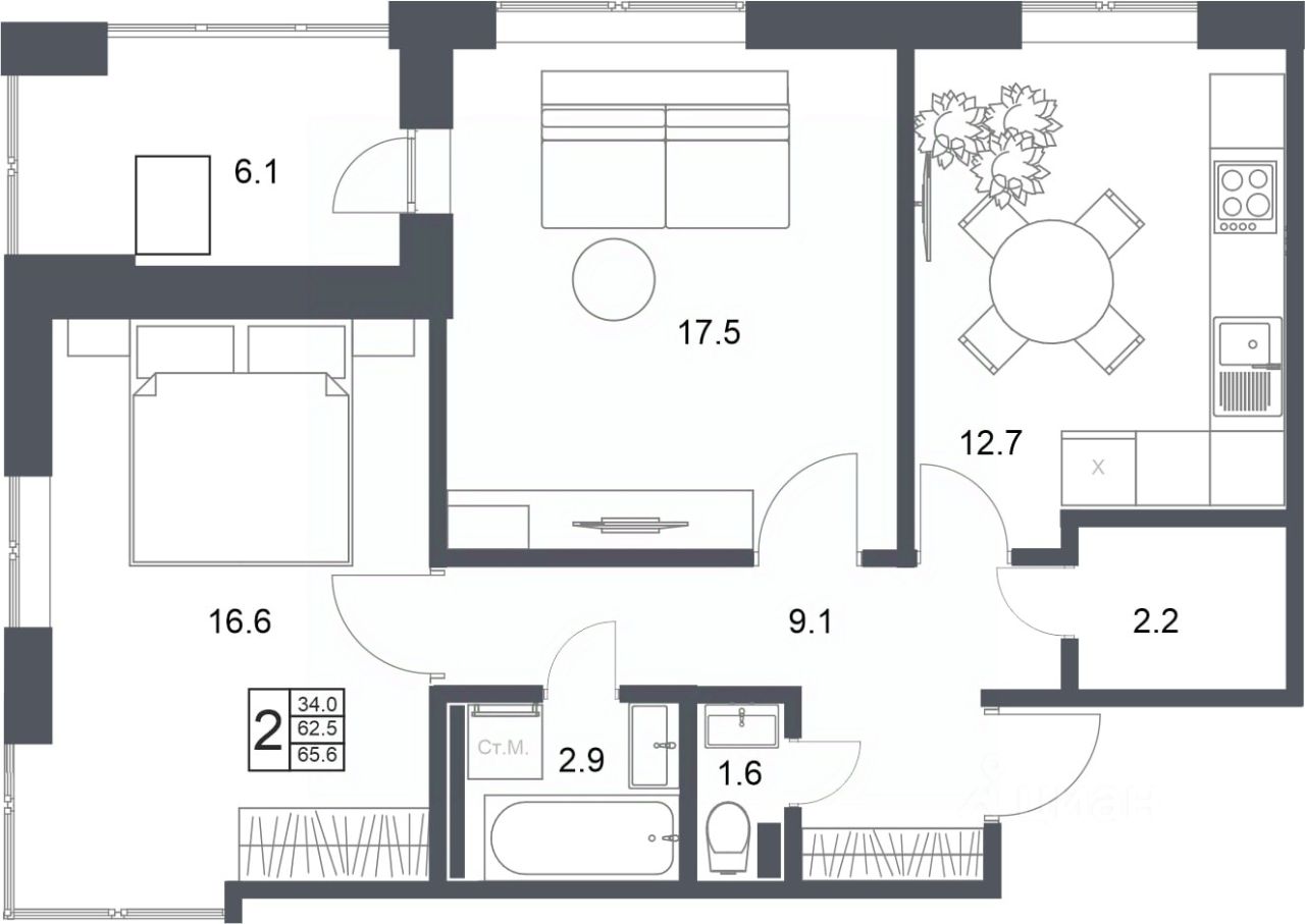Общая площадь65,6 м2