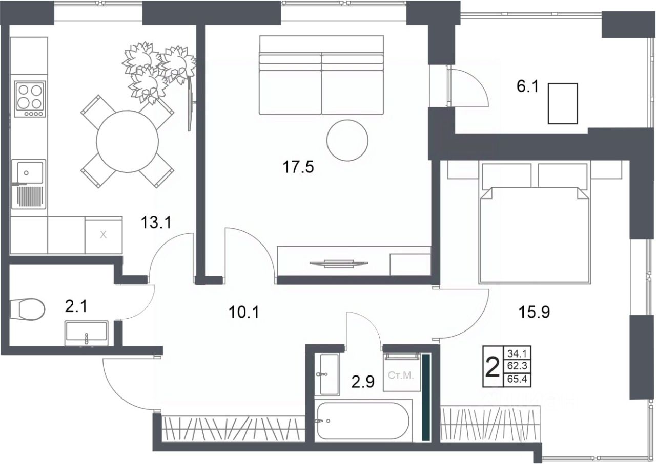 Общая площадь65,4 м2