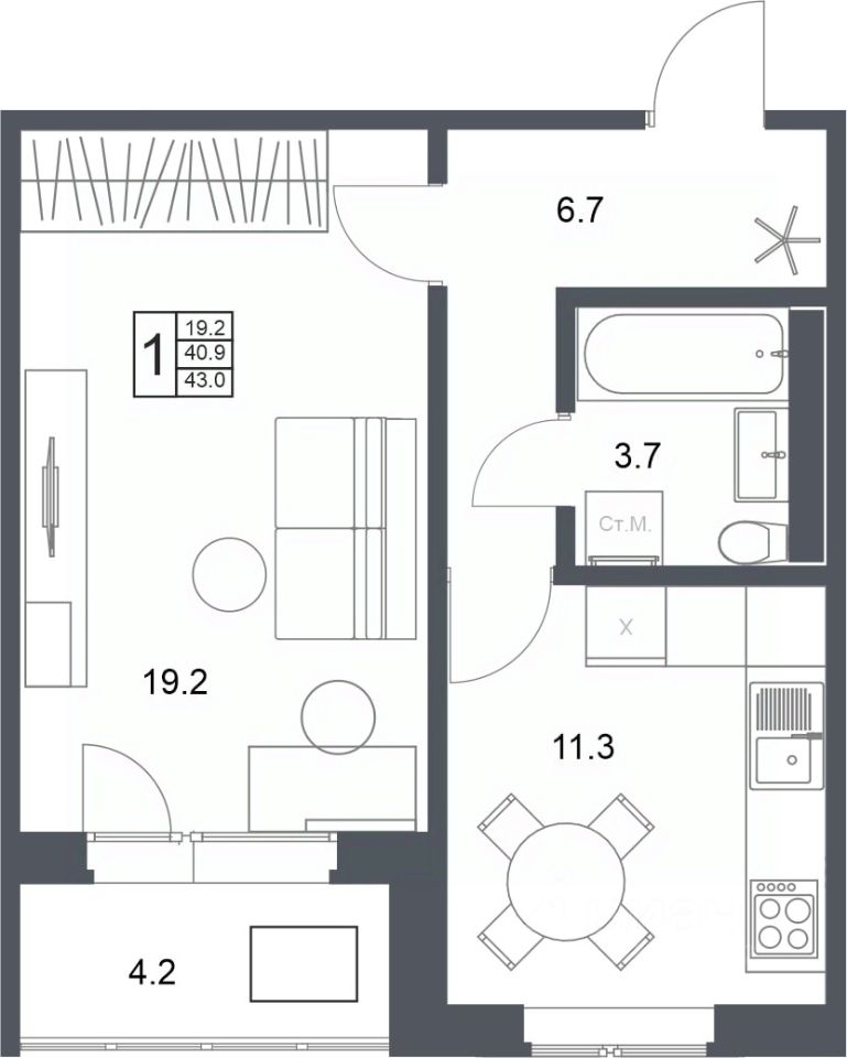Общая площадь43 м2