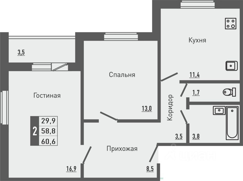 Продаётся 2-комнатная квартира в строящемся доме (корпус 3 (поз.32)), срок сдачи: III-кв. 2026, общей площадью 60.6 кв.м., на 8 этаже. Новый жилой комплекс ''Зеленый квартал'' от застройщика ''Орелстрой'' расположен по адресу Орловский муниципальный округ, деревня Жилина, улица Генерала Лаврова.