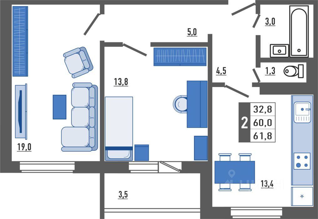 Продаётся 2-комнатная квартира в строящемся доме (Корпус 1), срок сдачи: II-кв. 2028, общей площадью 61.8 кв.м., на 13 этаже. Новый жилой комплекс ''Поколения'' от застройщика ''ОДСК'' расположен по адресу Орловская область, Город Орёл, Улица Льва Толстого.