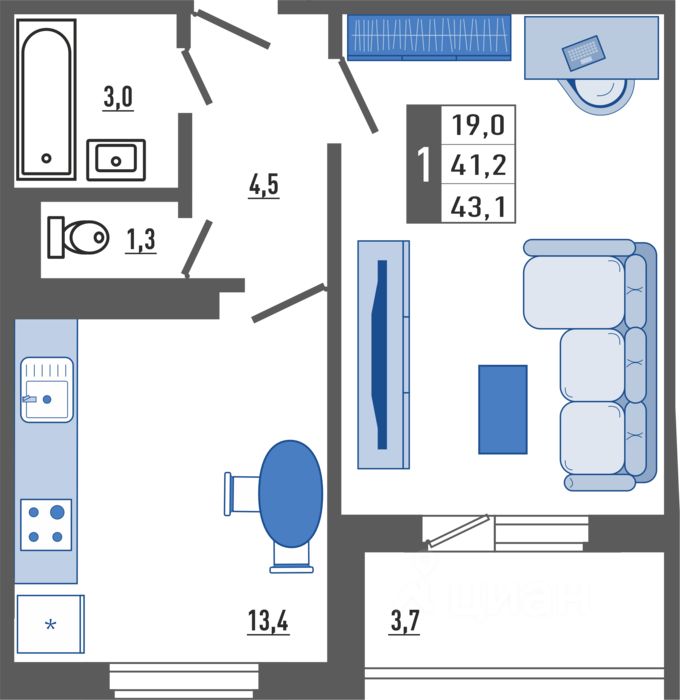 Продаётся 1-комнатная квартира в строящемся доме (Корпус 1), срок сдачи: II-кв. 2028, общей площадью 43.1 кв.м., на 2 этаже. Новый жилой комплекс ''Поколения'' от застройщика ''ОДСК'' расположен по адресу Орловская область, Город Орёл, Улица Льва Толстого.