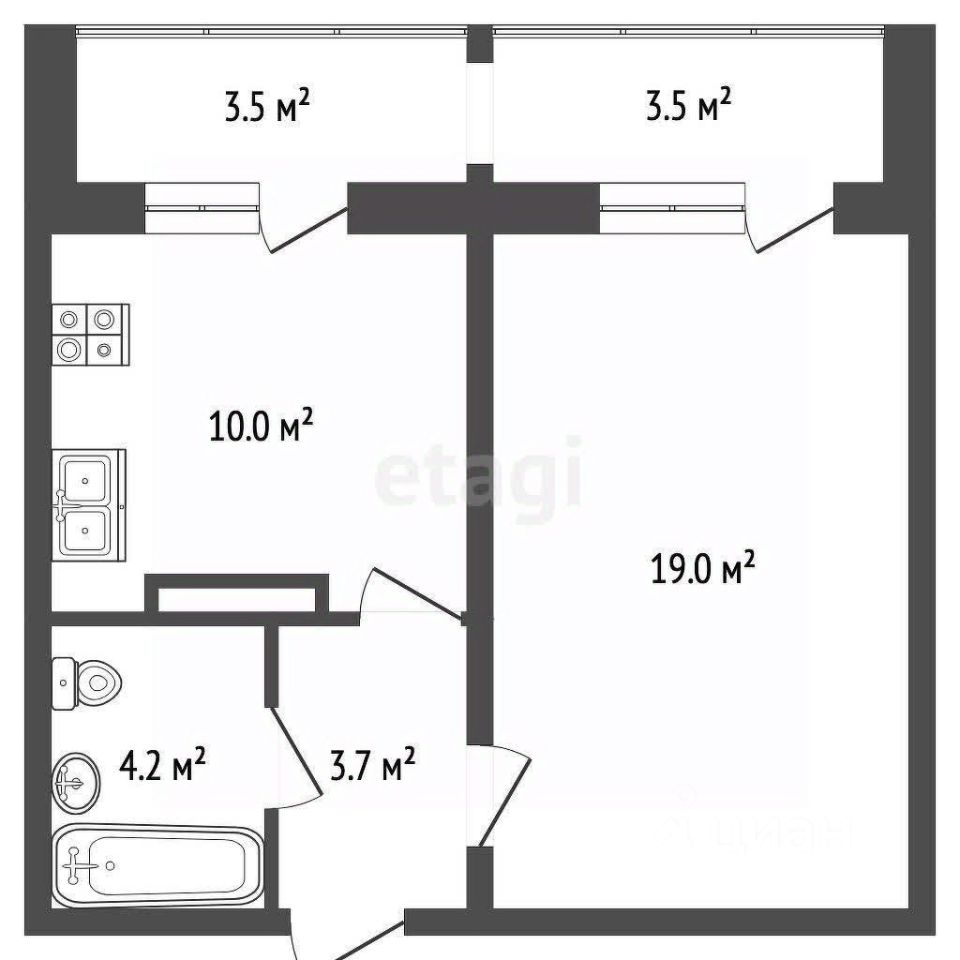 Общая площадь - 37 кв.м. Площадь лоджии - 7 кв.м. (лоджия в общую площадь не входит).