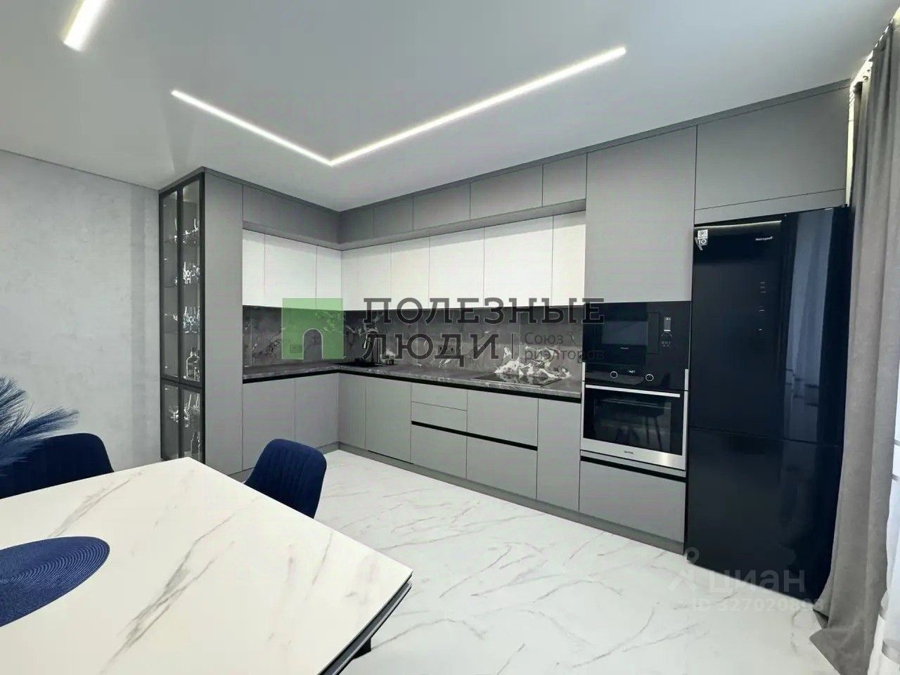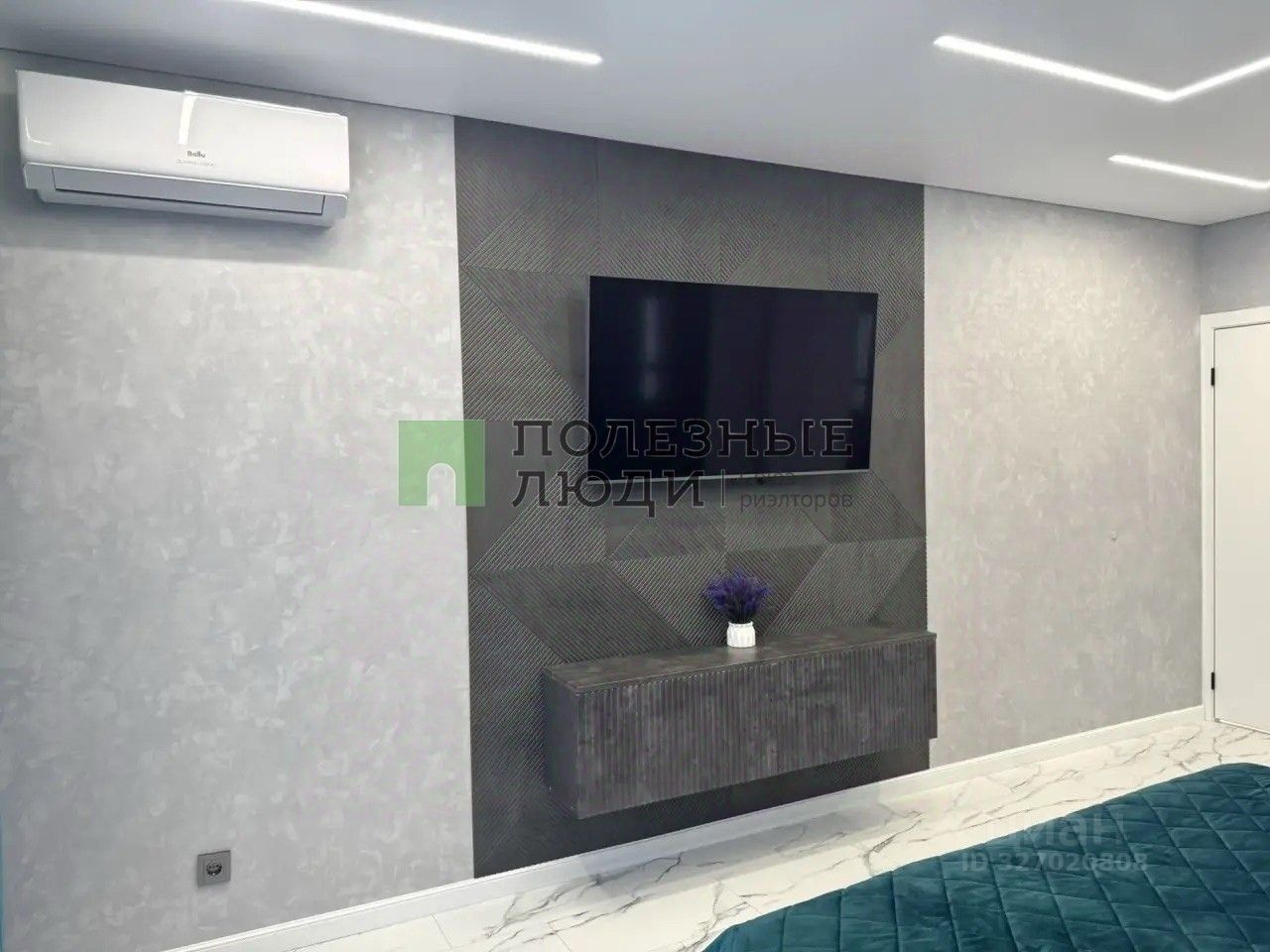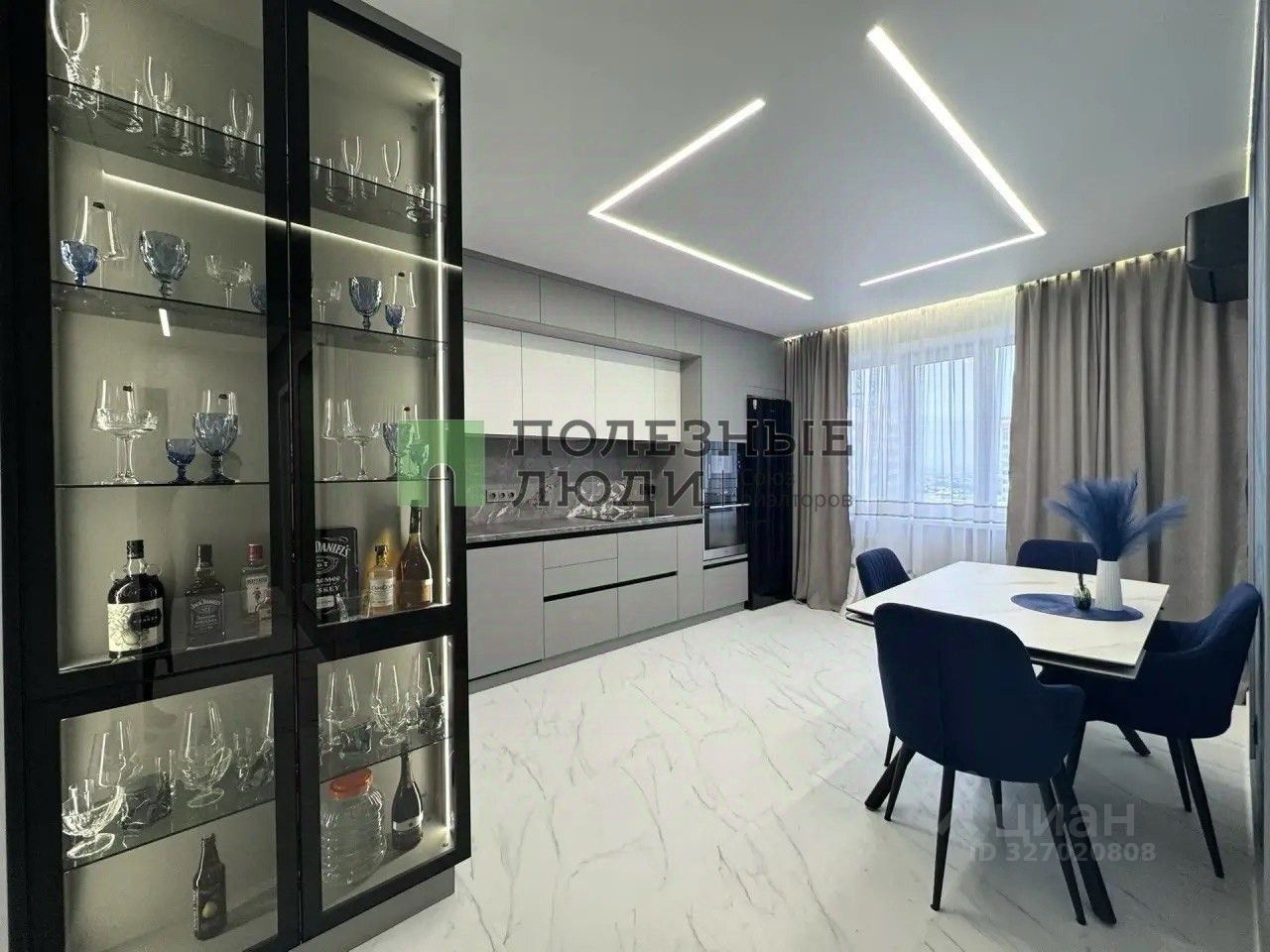 Материалы и комфорт: Полы - кварцвинил (теплый, износостойкий, водонепроницаемый). Окна - новые, затемненные, двойной стеклопакет (тишина и прохлада). Светодиодные ленты выведены так, что можно менять настроение комнаты одним движением. Подсветка штор - на отдельной клавише. Кондиционеры инверторные. На кухне - с управлением через Wi-Fi. Двери эмалированные с итальянской фурнитурой Abriss. Розетки - стекло, выключатели - сенсорные. Венецианская штукатурка: текстуры ''Бархат'' и ''Мокрый шелк'' меняют оттенок в зависимости от света. А картины на стенах - тоже часть этой уникальной штукатурки. В спальне парящая кровать с подсветкой.