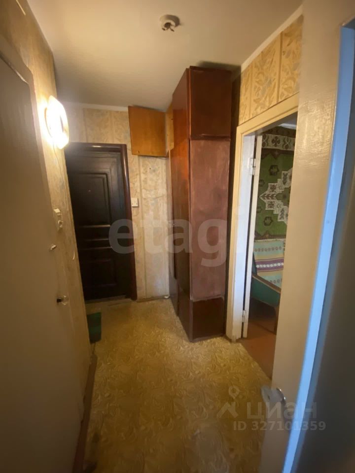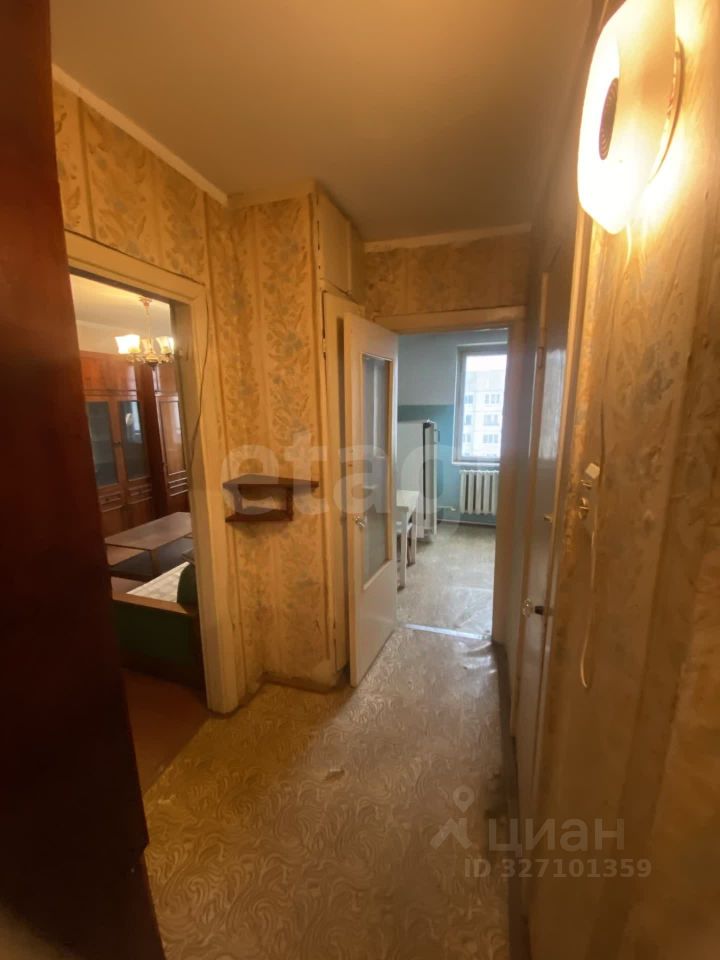 Квартира требует ремонта, жил пожилой человек. Выход на балкон из комнаты. В квартире есть кладовка. Счетчики установлены на свет и воду. Лифт в подъезде новый.