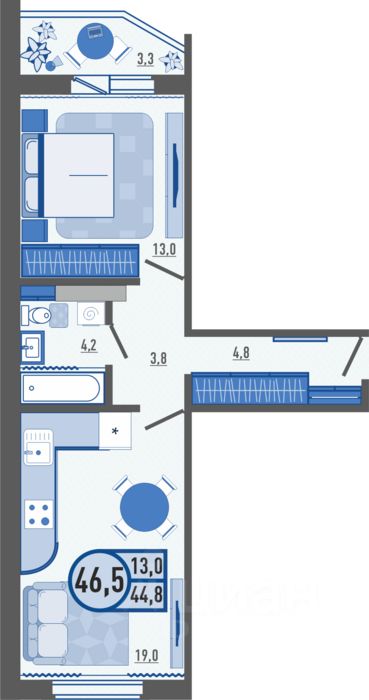 Общая площадь46,7 м2