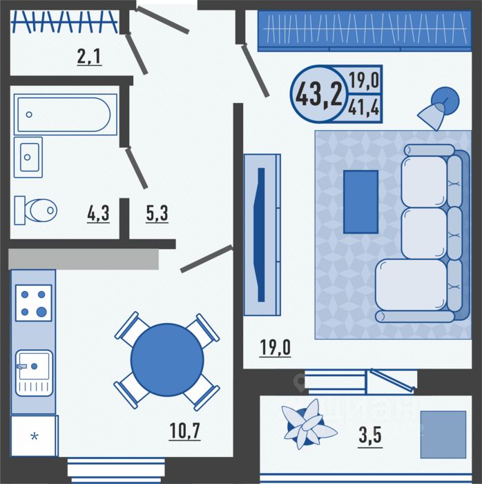 Общая площадь43,4 м2