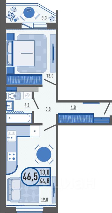 Общая площадь46,5 м2